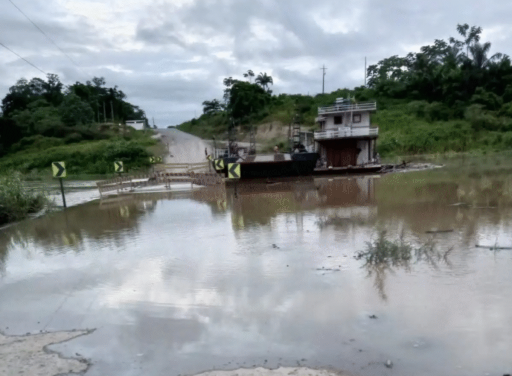 O Rio Caeté voltou a causar transtornos em Sena Madureira ao subir o suficiente para cobrir completamente a ponte
