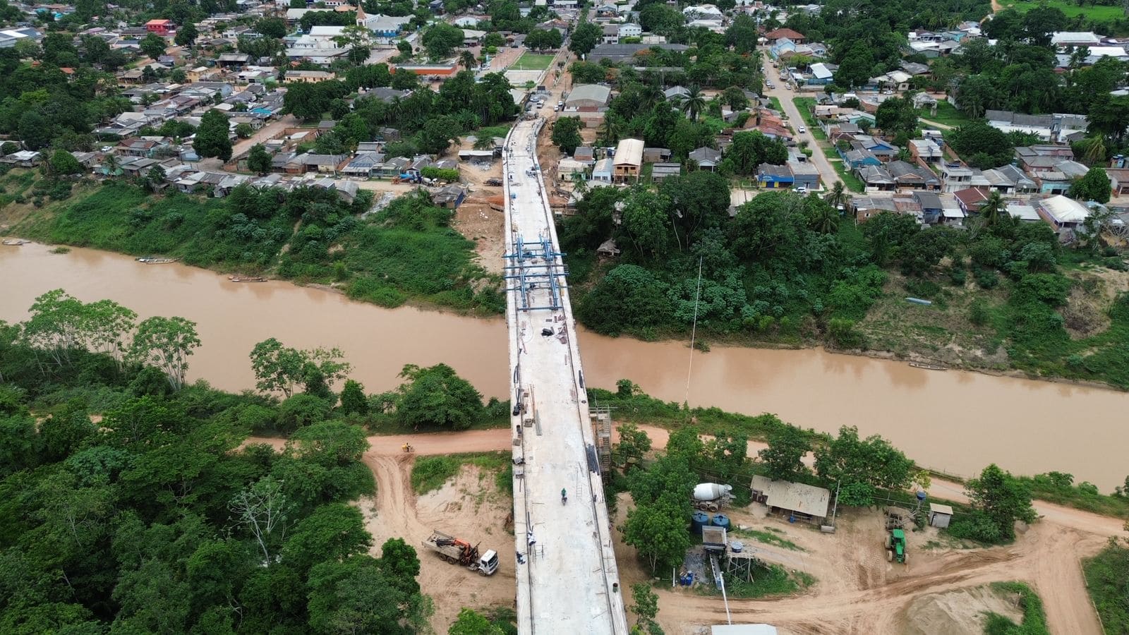 O governo do Acre, por meio do Departamento de Estradas de Rodagem, Infraestrutura Hidroviária e Aeroportuária (Deracre), intensifica os trabalhos nas etapas finais da construção da ponte sobre o rio Acre em Xapuri. A obra mobiliza cerca de 100 profissionais em dois turnos diários, concentrados na finalização da superestrutura e dos acabamentos. A presidente do Deracre, Sula Ximenes, ressaltou que a obra atingiu 96% de execução e destacou o impacto da ponte para a população: