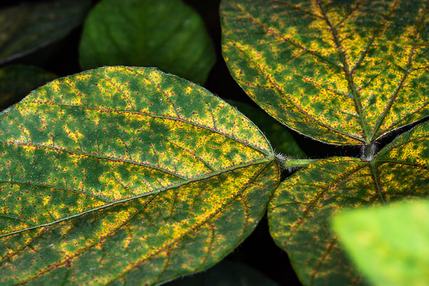 A ferrugem asiática é uma doença causada pelo fungo Phakopsora pachyrhizi e preocupa produtores de soja e trigo. O seu principal dano é a desfolha precoce, impedindo a formação completa dos grãos, ocasionando a redução da produtividade. A doença foi diagnosticada pela primeira vez no Brasil em 2001 e, desde então, devido à facilidade de disseminação do fungo pelo vento, ocorre em praticamente todas as regiões produtoras de soja do país.