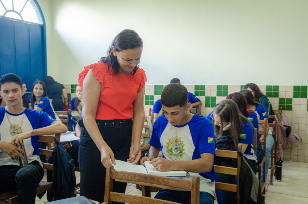 Denise Miranda está entre os mais de 1.200 professores contratados de maneira efetiva pelo Estado. A docente ministra aulas de Língua Portuguesa e Língua Espanhola para estudantes da Escola Belo Porvir, em Epitaciolândia.