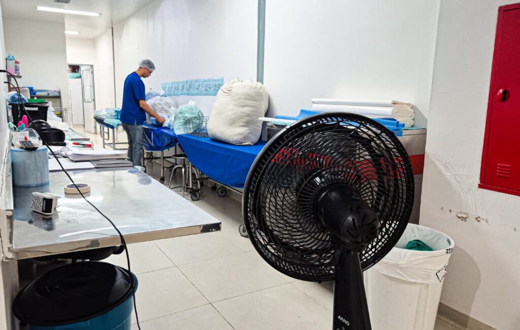 De acordo com a entidade, os profissionais cumprem plantões de até 24 horas em ambiente insalubre, com equipamentos de climatização quebrados ou inoperantes, ausência de local adequado para descanso e risco sanitário, já que o setor lida diretamente com materiais críticos para procedimentos hospitalares.