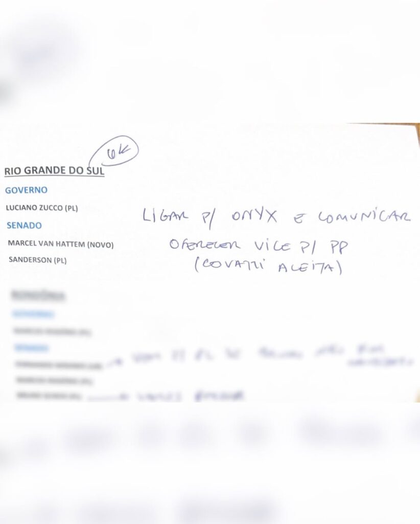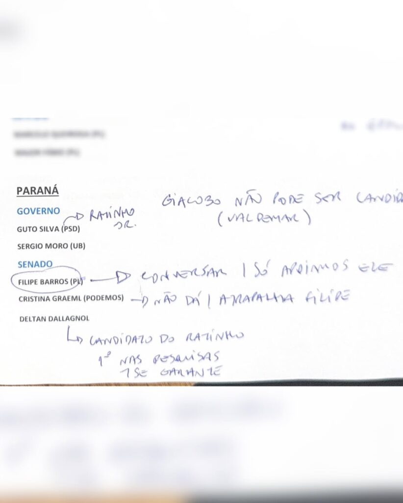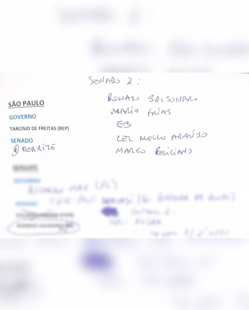 A inclusão de Ulysses nas anotações chama atenção. Embora vá à reeleição à Câmara Federal, a menção ao seu nome indica credenciamento junto ao núcleo mais forte do bolsonarismo. O parlamentar tem se destacado por posicionamentos alinhados ao grupo político, o que pode ampliar seu espaço nas articulações estaduais e nacionais.
